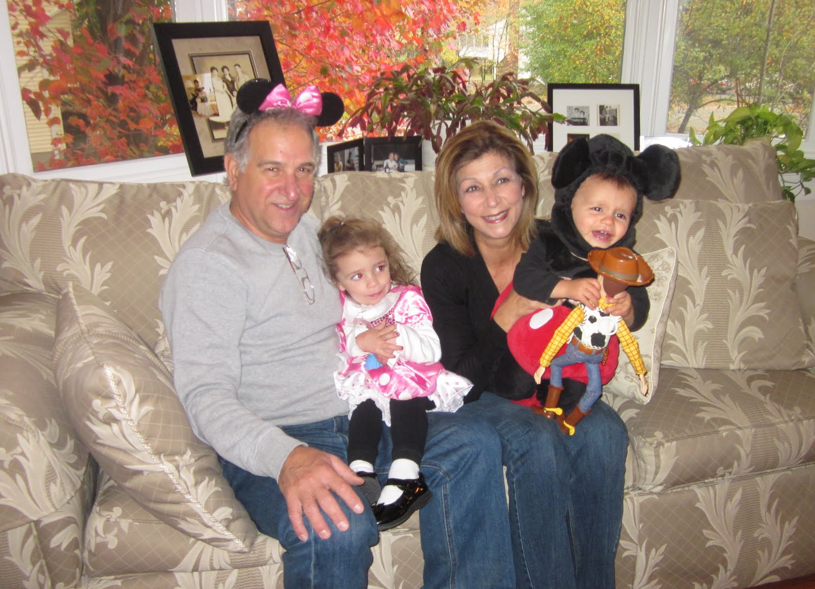 We had a jam-packed, fun-filled Halloween! As soon as we arrived home after 10:00 Mass, we quickly changed into our Mouseketeer ensembles to do a little trick-or-treating. Grace and Andrew received special treats from our neighbor, Al, and they were so happy to see their friend, Hadley, from across the street. Afterwards, we headed out for some more treats at Uncle Denis and Aunt Mary's house, Gram and Pop's house, and the neighbors on DeGroff Place (where Mommy used to trick-or-treat as a child). Grace and Andrew enjoyed visiting the neighbors and showing off their costumes. Our next stop was Nanny and Poppy's house, and we were all treated like royalty! Everyone got treats... including Mommy and Daddy! Poppy made us enough chicken parmigiana to last an entire week!!! Next, we had fun visiting Nana, Grandpa, Aunt Dana, and Vito, and the kiddies were spoiled rotten! We ended the day at a Halloween party with all of our Tumbles friends! It was such a SPOOKTACULAR Halloween, and we were fortunate to have such BOOTIFUL weather!