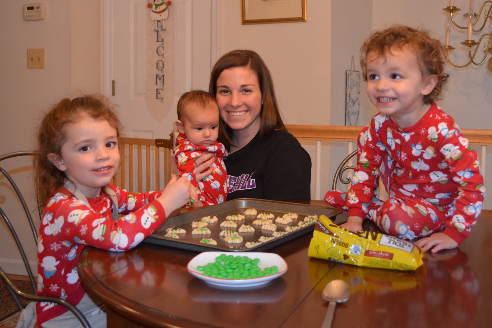 We had such an enjoyable afternoon baking Christmas cookies for Santa with LuLu! When LuLu arrived, she brought Grace and Andrew a very special treat... their first Christmas gift of the season! They were delighted with their Russell Stover Chocolate Santas, which is the exact same present my Mum used to bring me each Christmas:-) We made some delicious butter cookies, and Grace and Andrew helped with the cookie press and decorating. I'm convinced that more M&M's made their way into Andrew's mouth than on top of the cookies! He is such a little character! Grace loved wearing her Santa Claus apron and sprinkling green and red sugar on the cookies. We listened to Christmas songs, took pictures by the tree, and received a visit from our favorite college student... Laura Lu! Grace, Andrew, and Kate greeted Laura in their matching snowman pajamas, and they had such a great time playing with her! We even had a mini celebration in honor of Laura's 20th birthday, which is tomorrow "December twenty-two." I still remember when Laura was Kate's age! The fact that she is almost in her twenties is shocking! I hope my babies don't grow up as fast as Laura did! It only goes to show how quickly time flies and the importance of enjoying each and every day! I'm loving this time in my life! I always looked forward to being a mother, and I couldn't be happier with my 3 little angels. This was such a memorable day, and Dan gave the cookies his stamp of approval! He's an incredible cookie taster (I hope we'll have some left for Christmas Eve)!